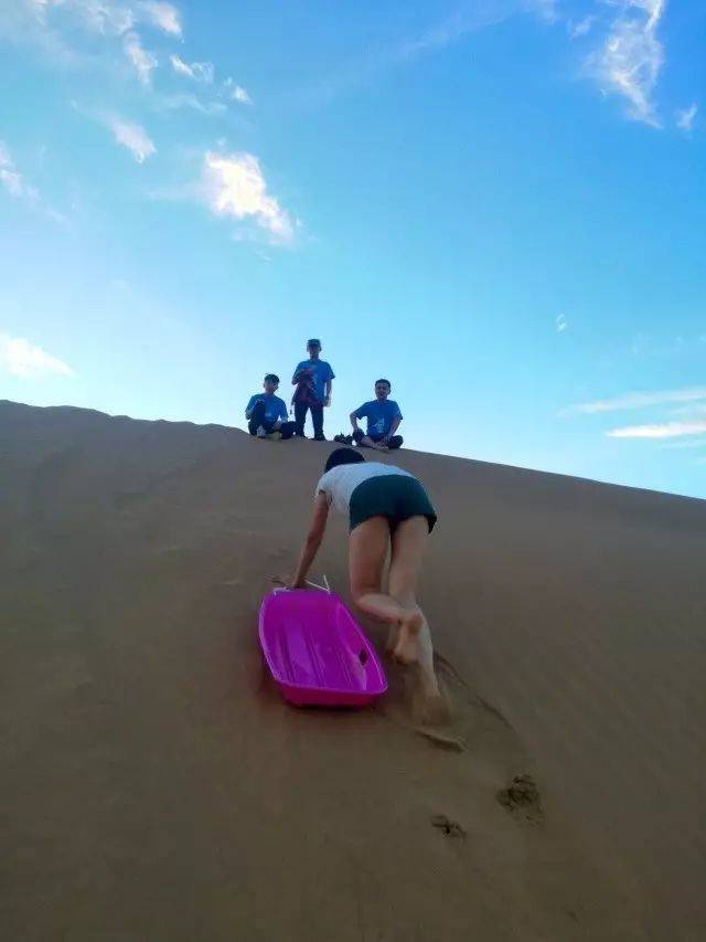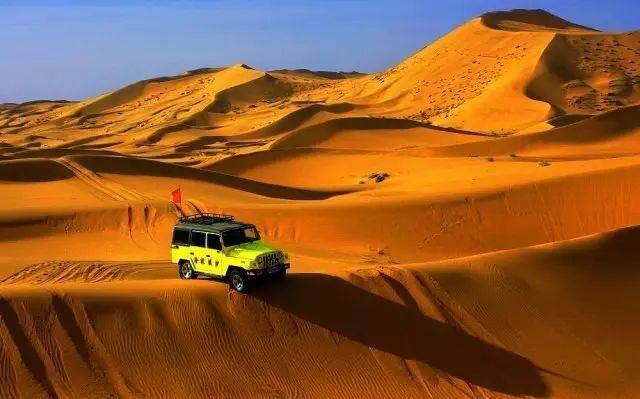 银川→阿拉善→越野冲沙→一站到达金色沙海游玩→越野车冲沙到达最高峰下扎营→大漠日出→徒步登顶香炉峰→越野车出沙漠→银川