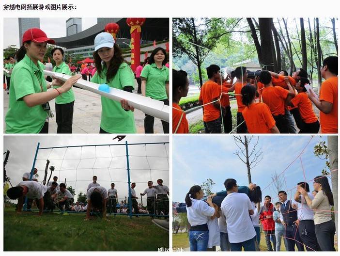 活动介绍:在全体队员面前悬挂一张"电网",网上的洞口大小不一,要求队员在规定时间内,从网的一边依次通过到达另一边。在此过程中队员的任何部位都不允许碰网,否则洞口将被封闭,每一洞口只能用一人次。