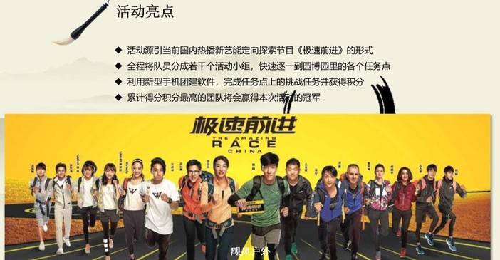 活动源引当前国内热播新艺能定向探索节目《极速前进》的形式