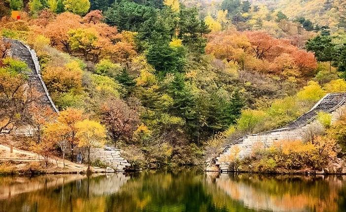 至此既可欣赏秀丽的湖光山色,又可观长城的清灵俊秀,还有绿树红花相伴身旁,使人有远离城市喧器,回归大自然的美妙感觉。