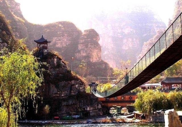 峡谷门口超长的铁索晃桥,成就了太多浪漫情缘