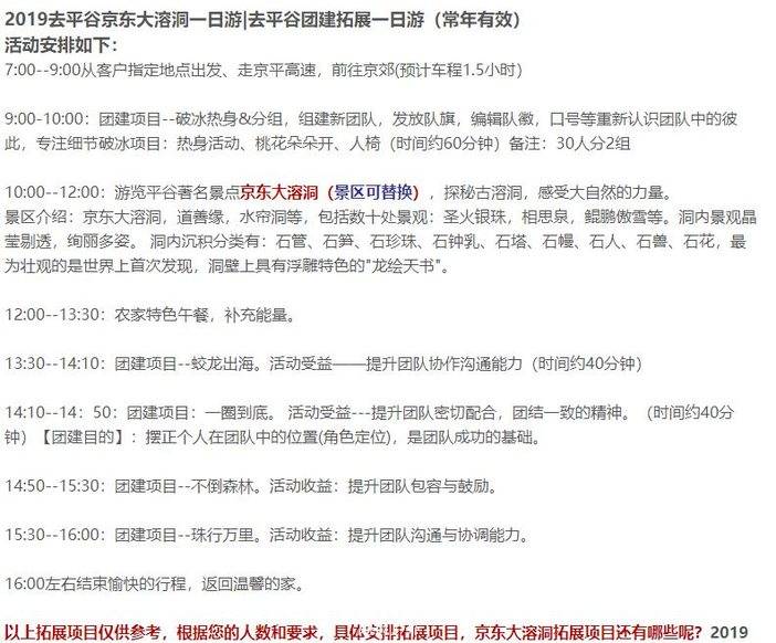 平谷京东大溶洞一日游|公司团建拓展|去平谷拓展训练