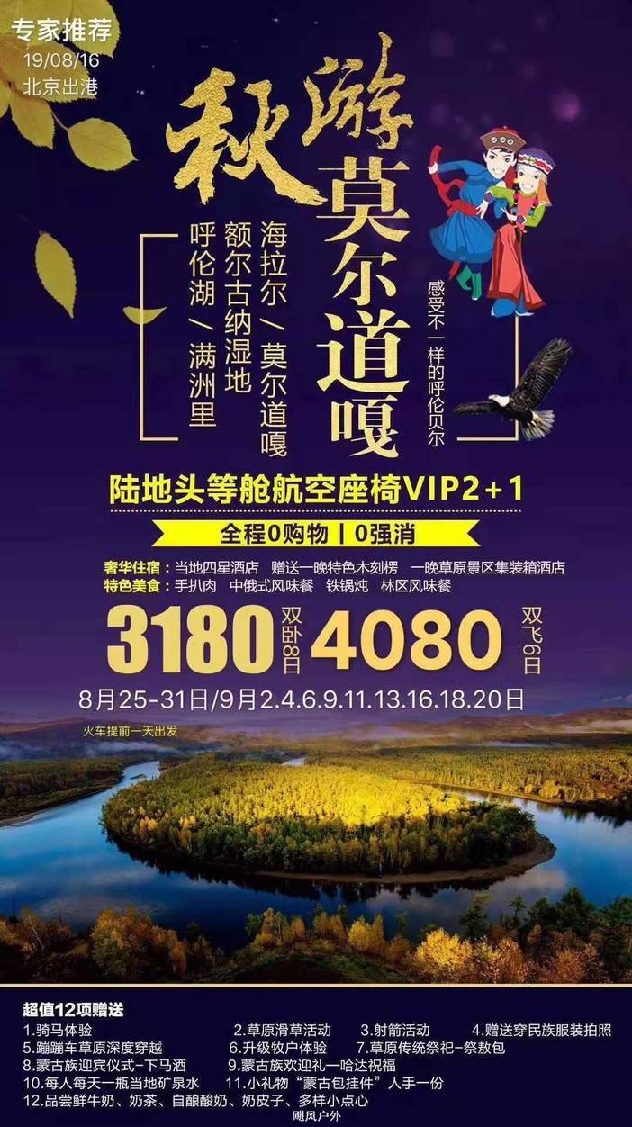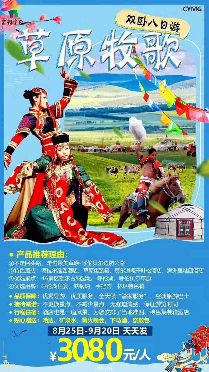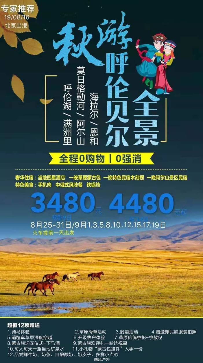 秋季呼伦贝尔草原 双飞7日游或者双卧9日游 (多了阿尔山)
