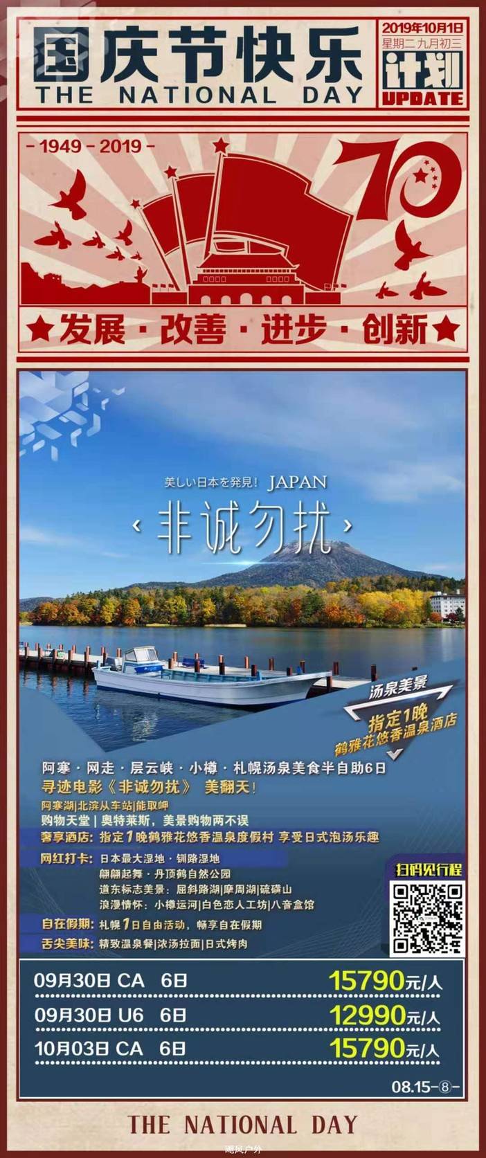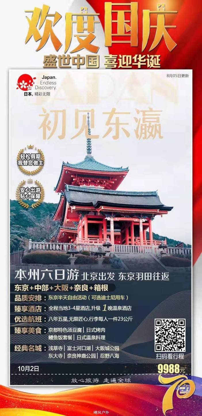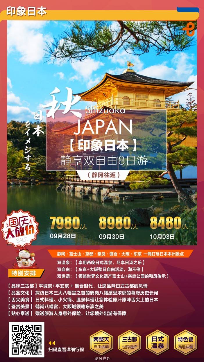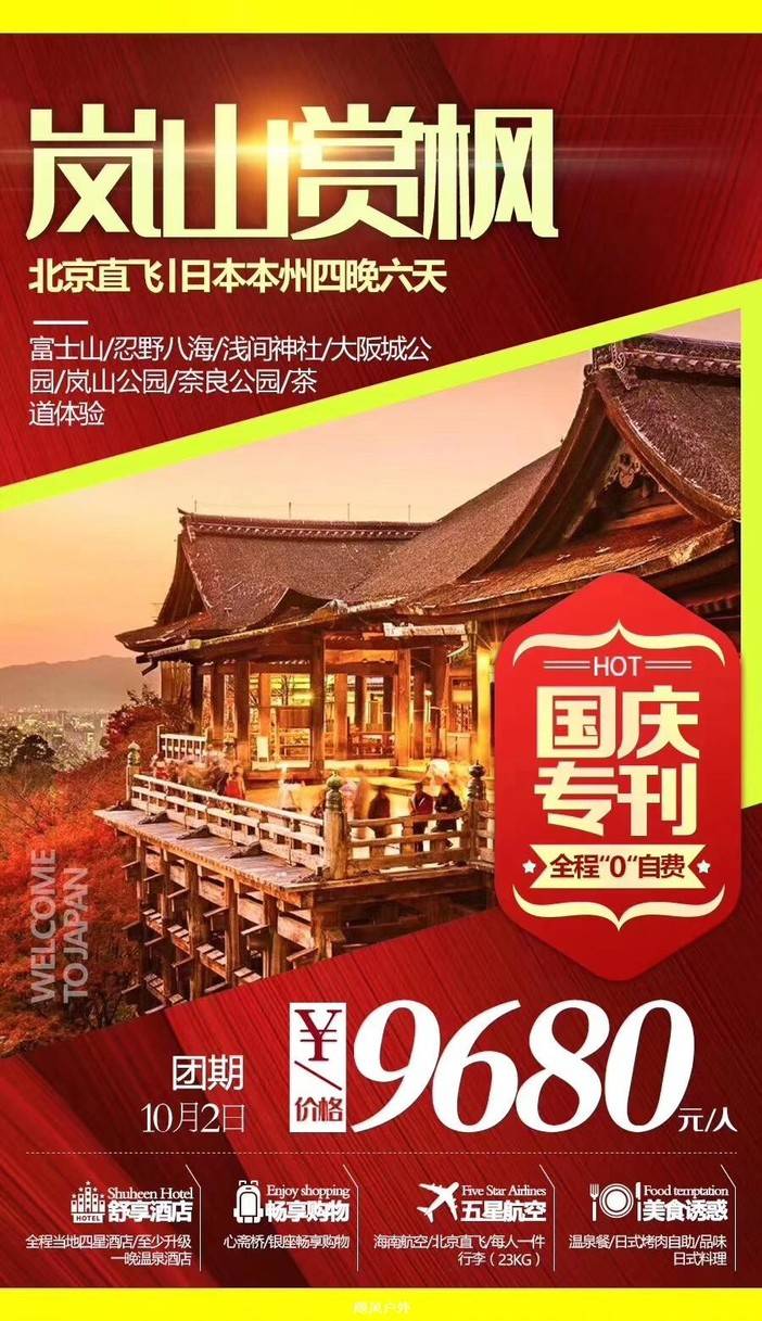 特价日本国庆团 请看错峰2天超级便宜