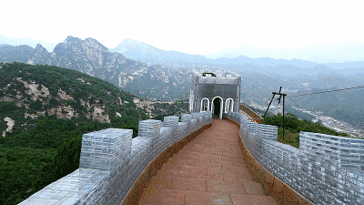 该项目耗时近一年,斥资千万终于建成了中国首段水晶打造的水晶长城,采用特殊建筑材料,水晶砖块一块块搭建而成