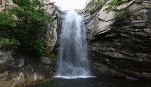 “雄伟瀑布天边挂,时隐时现飞流下;喜迎今日仙客来,云游胜景何自夸。”从景区入口步行向前约200米,壮美的迎仙瀑即呈现在我们面前;高达70多米的瀑布时隐时现呼啸而下,似乎在欢迎着每一位游客。