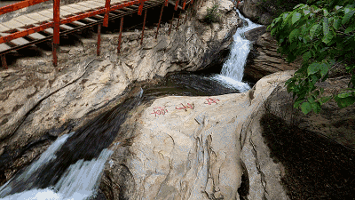 大潭泉水直流,小潭泉水打转,名曰“母子潭”。何由?小潭泉水,慢慢的转几圈后才依依不舍的离开母潭顺流而下,是多么的留恋母亲啊!这种潭潭相连、潭瀑相连、上潭下瀑的景观,可算是清凉谷的又一绝。
