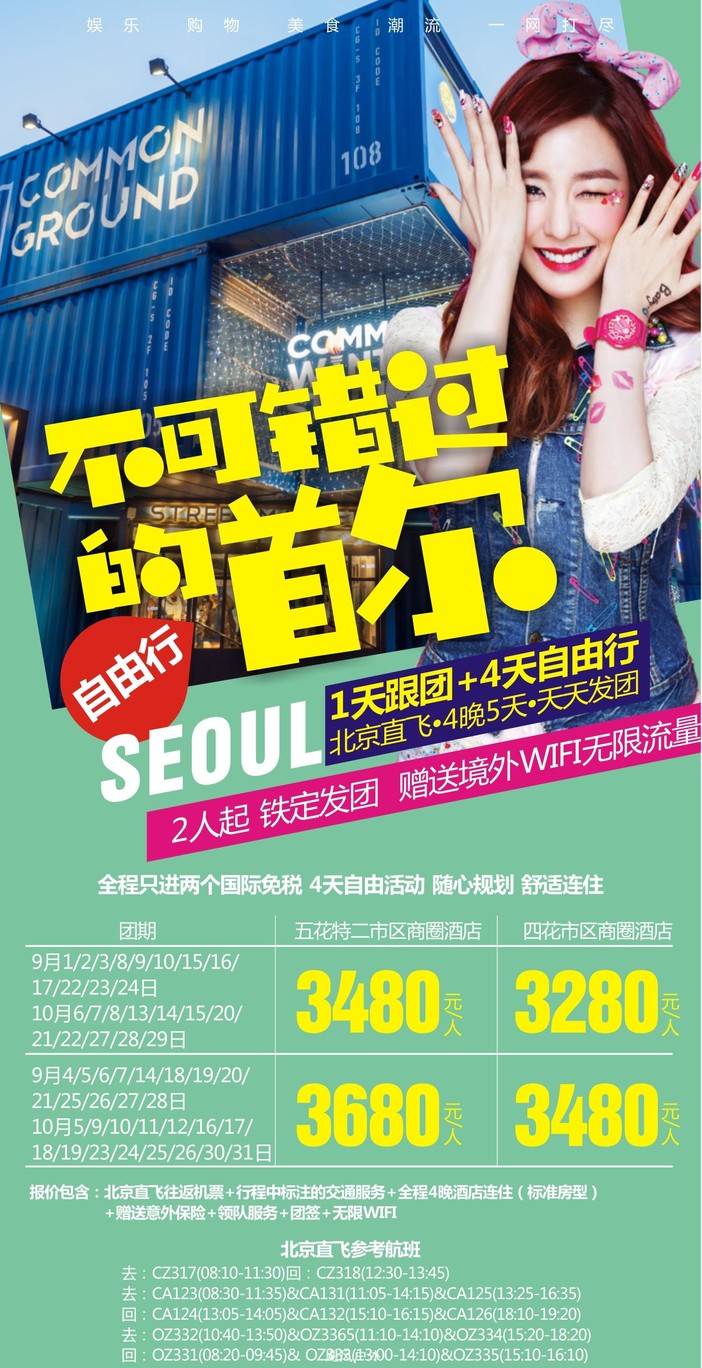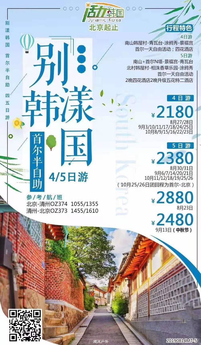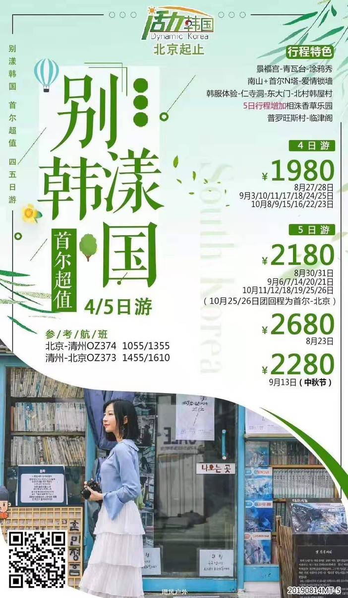 4、北京直飞首尔 入住市区哦 1+4 1天跟团 4天自由行