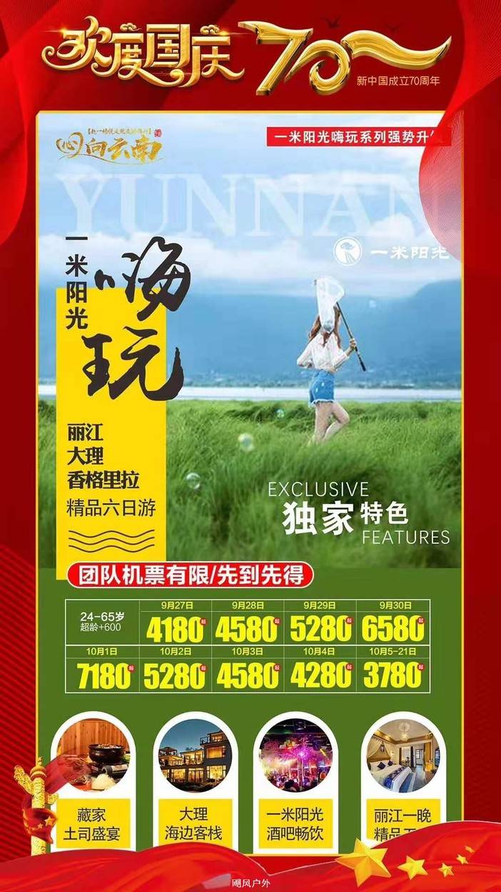 国庆云南10.2-7 昆明大理丽江双飞一动6日游(一价全含)