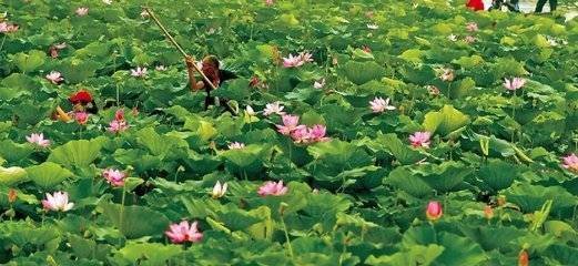 一幅天然的自然风光画展现在大家的面前。乘船20分钟抵达白洋淀王牌景点------荷花大观园