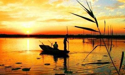 09:00在小鸟的欢叫声中醒来,大口呼吸白洋淀上清新湿润的空气,看一轮红日升起于水天之间,早餐后乘船欣赏刚刚睡醒的白洋淀的宁静与唯美,