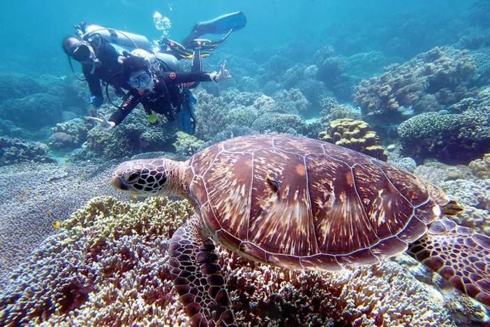 如果有一个海岛,可以潜水看鲸鲨、可以看很多沙丁鱼、还可以和海龟小丑鱼面对面,你去不去?