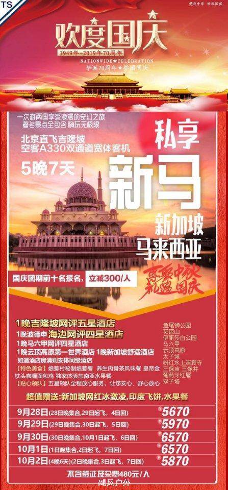 2、新马7日游——报名立减300元每单 9.30/10.1 7日游不用请假