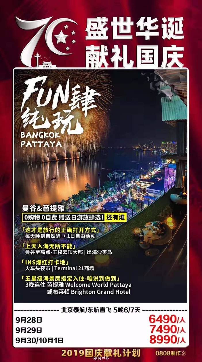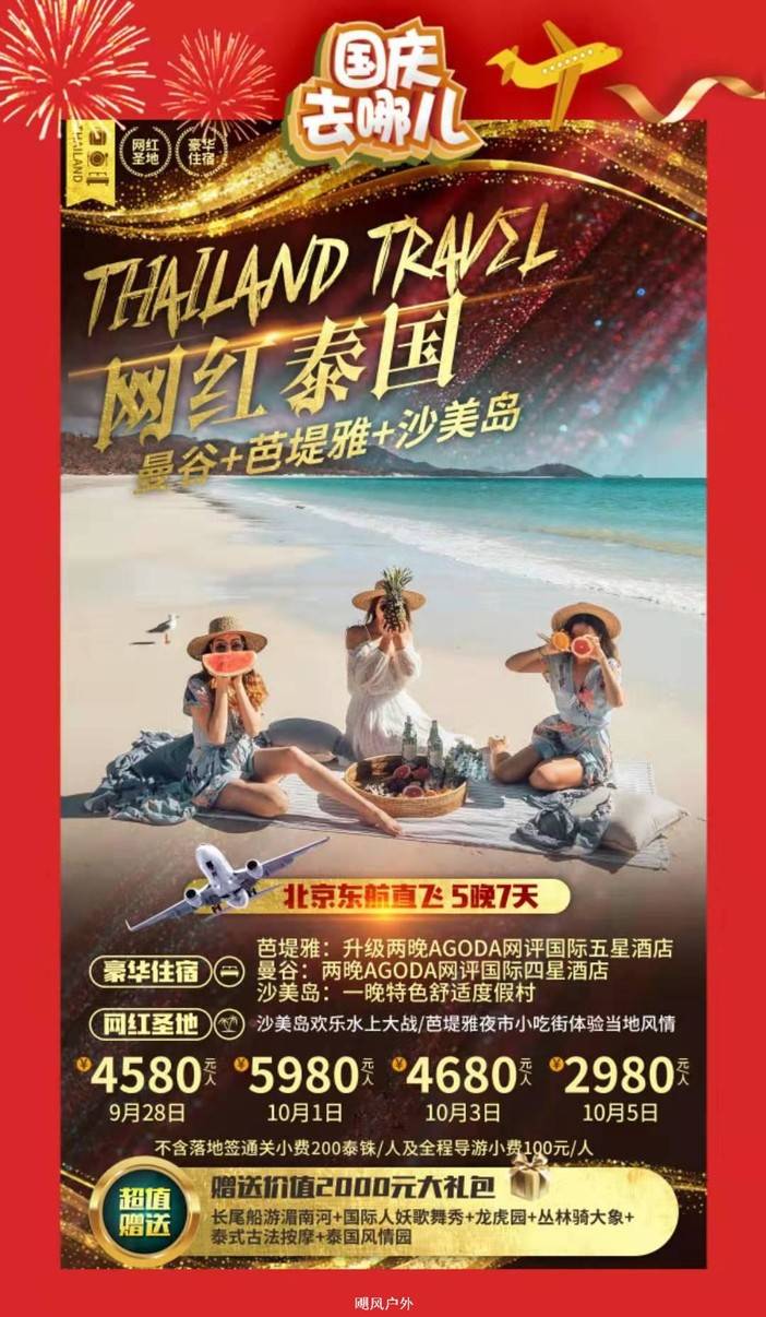 5980元团款+不含小费全程100元每人,+200泰铢通关小费,机场付领队 (泰国目前落地签免费 )