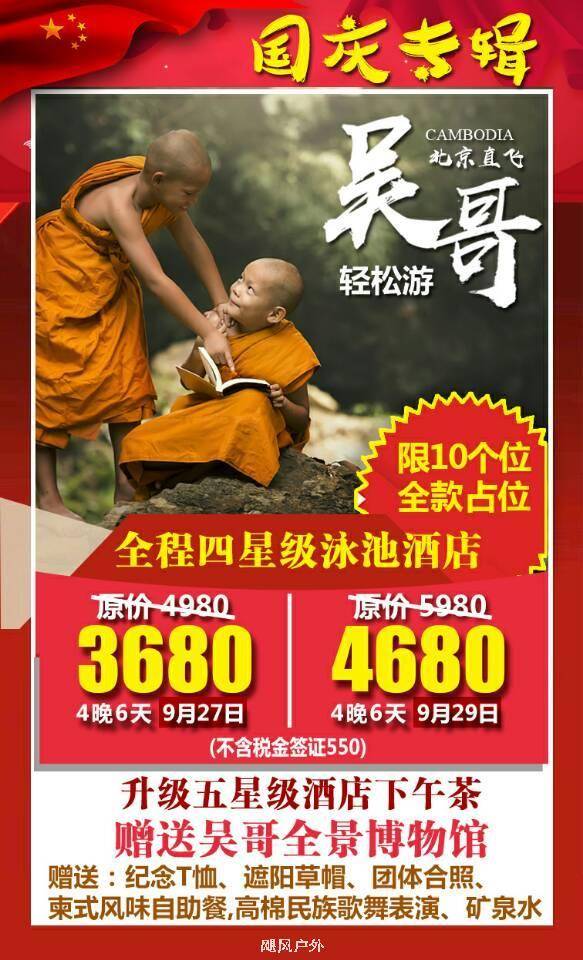 一、错峰出游柬埔寨:特价4680元+550签证费 9.29出发 6日游