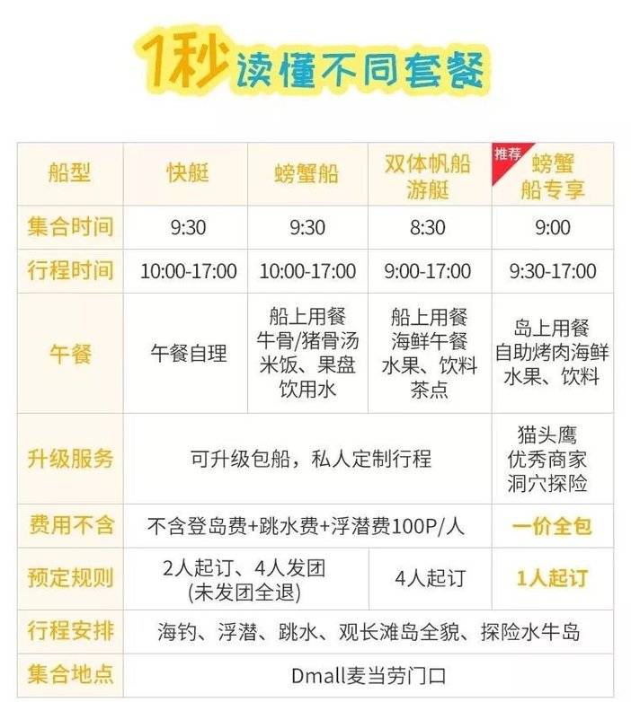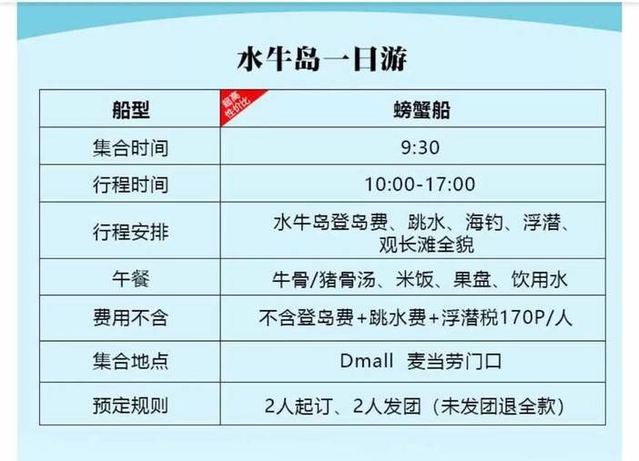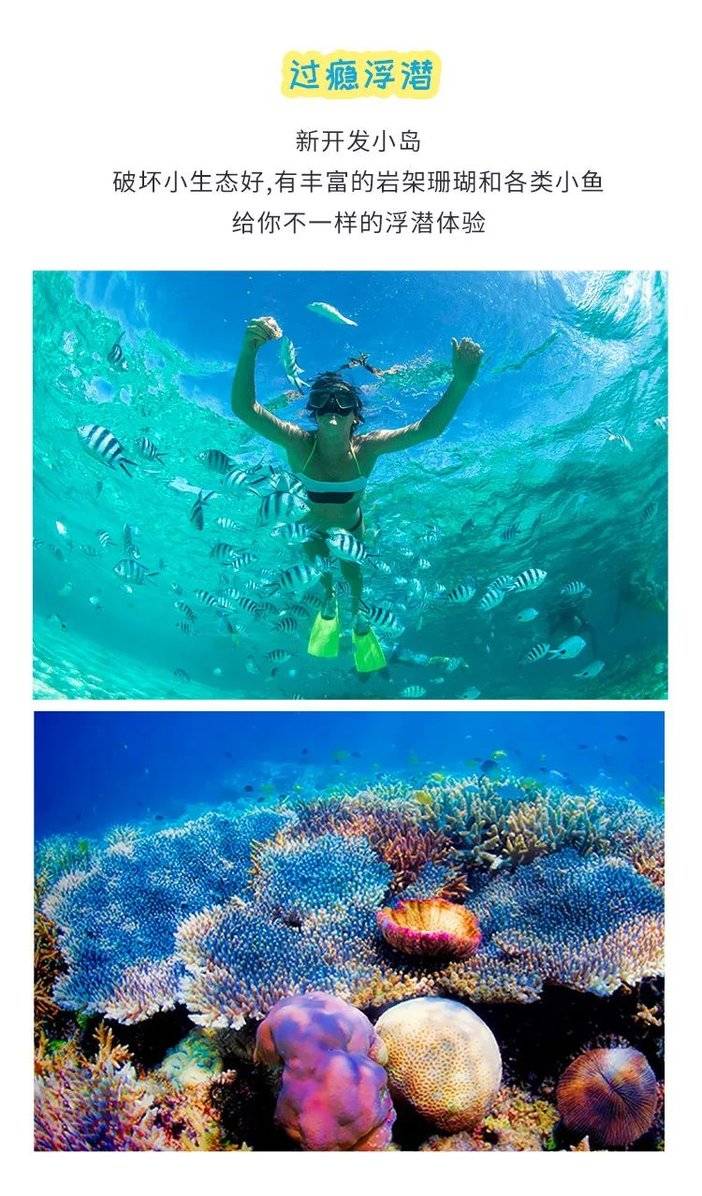 注意:潜水前后的24小时内,不能坐飞机。如果是5日的行程,可以安排在第3天进行此项目,潜水大概需要半天时间。