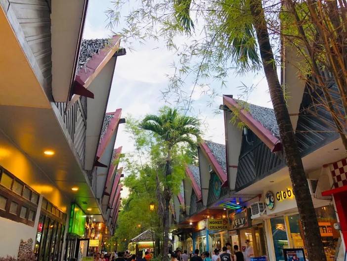 D'Mall是一个集餐饮、购物、旅客服务的街区,相当于闹市区,位于长滩岛中部,游客可以在这里找到各种服务设施。因此,这个地方经常被作为一个地标。