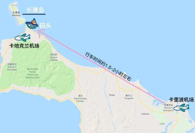 长滩岛是一个骨头型的长形岛(英文名字叫做Boracay),全岛长7公里,分为中部(S1、S2、S3和布拉波海滩)、北角度假区和南角度假区。岛上主要有两条平行的马路,一条是横贯南北的Main Road,在岛的中间位置,机动三轮车和汽车只能在这条路上通行;另一条是White Beach Path,沿着白沙滩,旁边都是餐厅,酒店和商店。