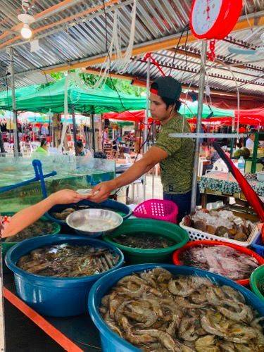 一个海鲜为主的市场,并且还有水果和各种小商品的摊位,海鲜你可以买了让附近的饭店进行加工。这里不仅是有海鲜,还有小商品,比如芒果干,精油香皂等,这些东西比D‘Mall附近还要便宜。