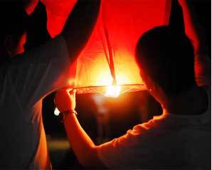 晚上更有篝火狂欢,放烟花,浪漫许愿灯...