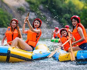 参与性更强的扎营野炊、扎筏泅渡、树上穿越、激流勇进、沙漠掘金、罗马炮架...