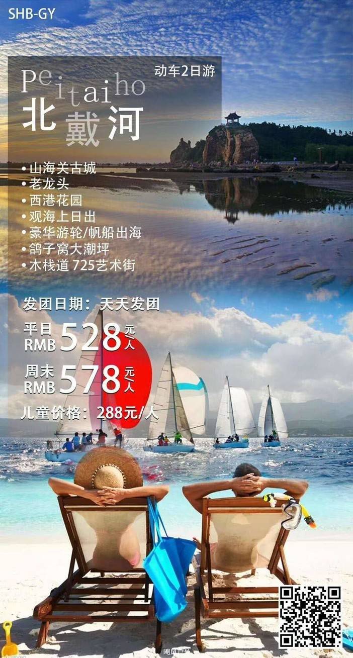 2、天天发团【北戴河3日游】 观海上日出 豪华游轮/帆船出海 鸽子窝 沙雕乐园/渔岛 休闲游