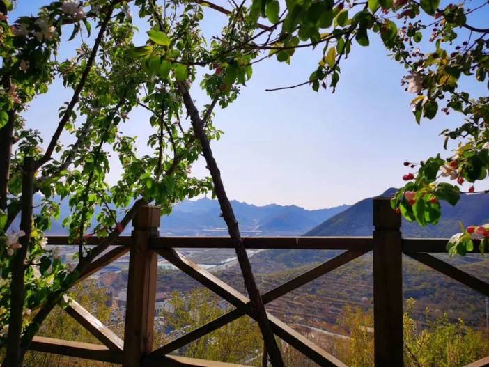下午统计人数进苹果园(自费3斤起 15元一斤)采摘,也可登山远望。