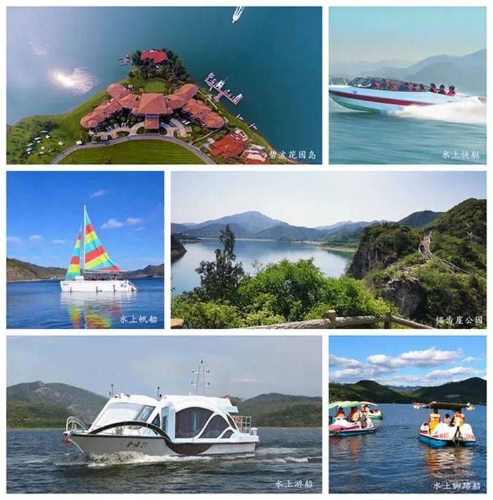 3、碧波国际花园岛:据说当初汪峰像章子怡求婚就是在这里哦。锯齿崖 岛 :以登山徒步为主,站在山顶可观赏金海湖全湖景色。