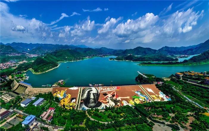 浓烈的画布背景与强烈的毕加索抽象风大力冲击着观客的眼睛,作为中国首例坝体巨画;