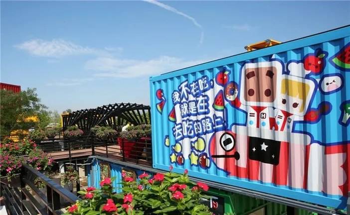 游玩体验1:然后先游览花间集『集装箱主题小镇』它在景区入口处,占地10万平米,是文化创意教育拓展活动为一体的文化旅游项目;