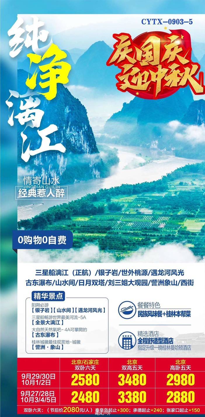 国庆桂林团 天天发团 2480元起双卧6日游 国庆桂林团