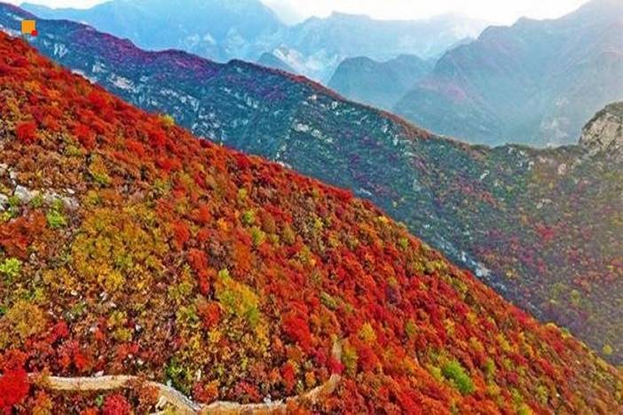 红叶密度堪称华北第一的坡峰岭,核心观赏区达两千余亩,每年秋天,二十万株野生黄栌恍若一幅繁茂磅礴的秋景油画。