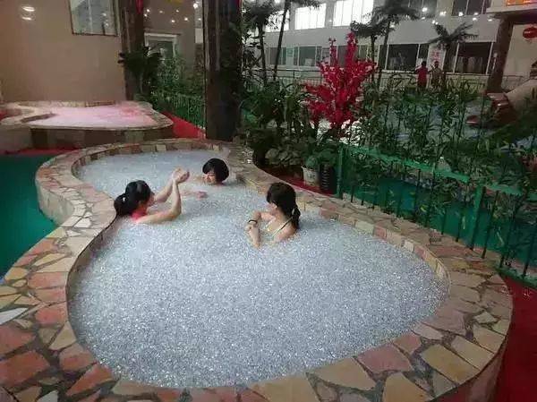 温泉区内设超大游泳池、休闲保健区、亲亲鱼疗区、果冻浴、儿童水寨、水疗区、韩式汗蒸、成人滑梯、玉石坊等项目。