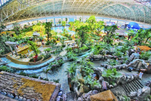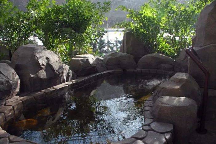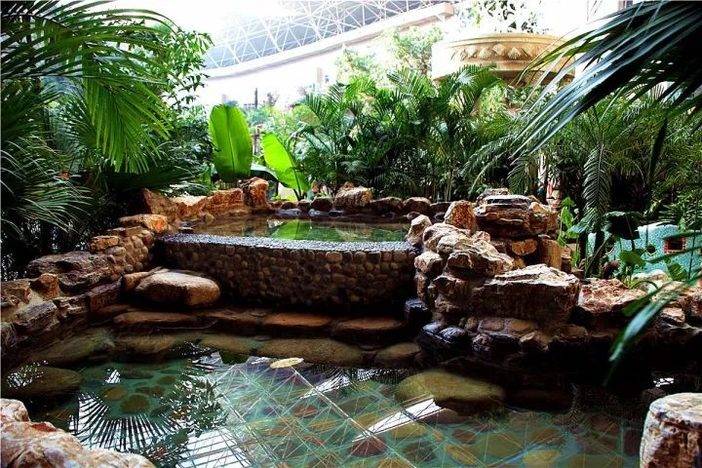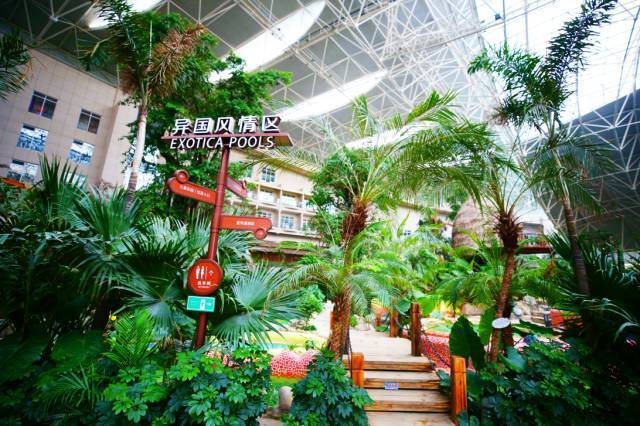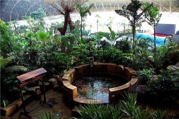 室内温泉由各种热带植物,打造出一个生态的雨林世界。秀色氤氲,水木清华,