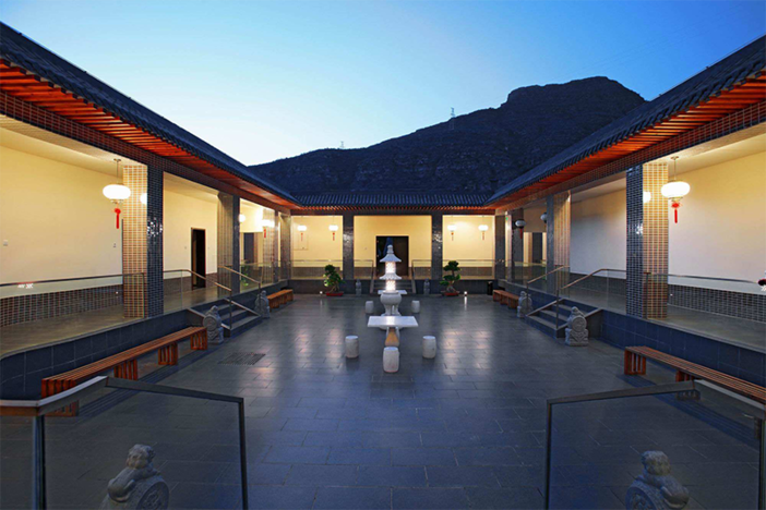 院子地面以石材毛面勾缝处理,渲染了院落的人文气息;