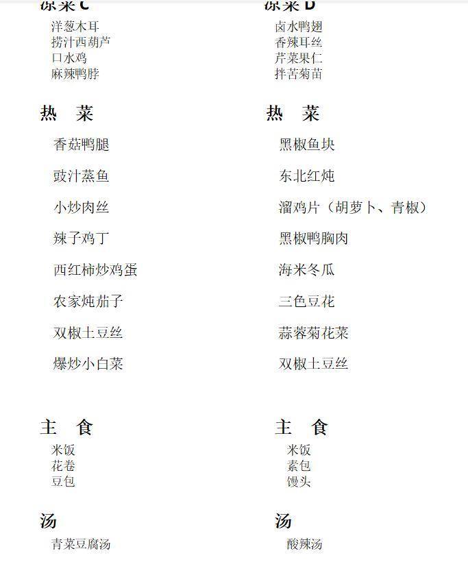 餐饮菜单 (晚餐自助ABCD可选 自助餐 不限量)