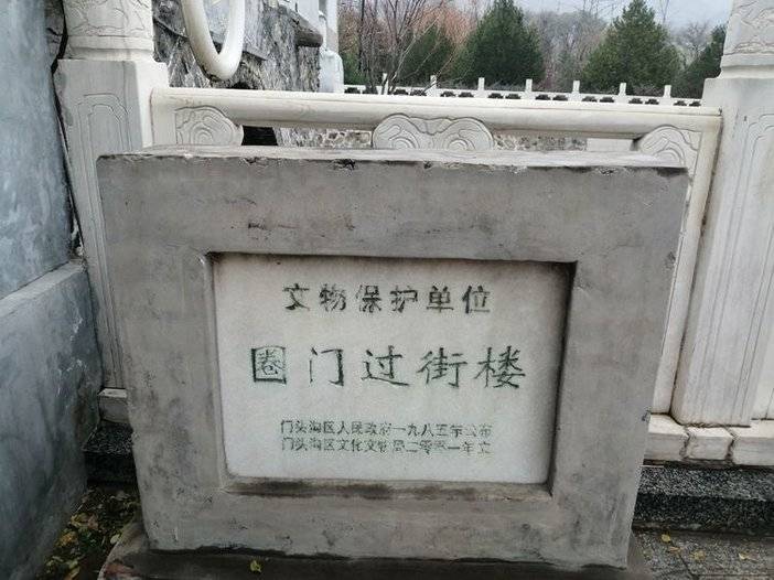 圈门位于门头沟门头沟路的西尽头, 因黑河沟上架起的一座过街楼(风雨桥)下方有券洞而名。京西古道自西向东穿过了过街楼的“券洞”就算进入了通往北京的大路,圈门前面的这条沟即门头沟,所以人们就把圈门称为门头沟之源,门头沟的名字便由此而来。