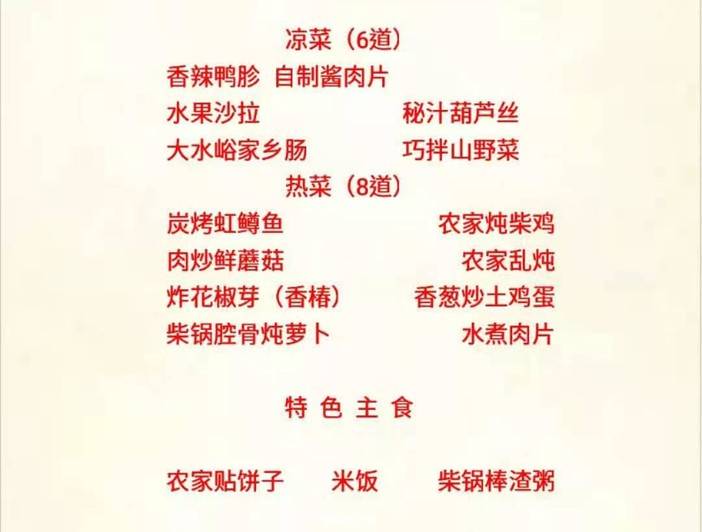 第一天午餐 度假村特色餐 餐标 10人/桌 不含酒水(可自带或单单点)