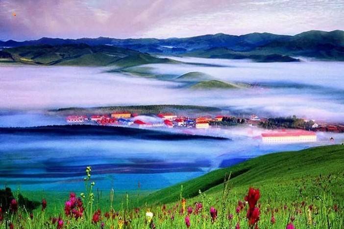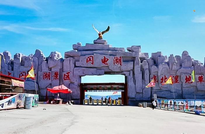 是滦河上游最大的湖,因入湖前的河流为闪电河而得名。在高处俯视,湖的形状也极像一道闪电。湖边万顷草滩,风景如画,置身于草青云淡、繁花遍野的茫茫碧野中,似有天穹压落、云欲擦肩之感。