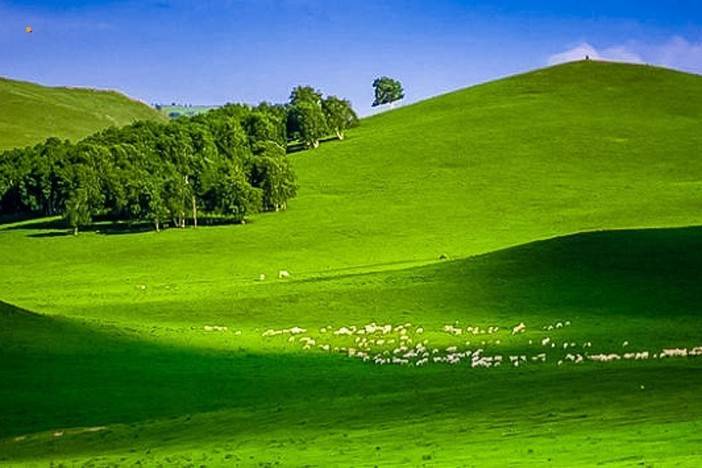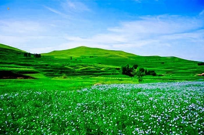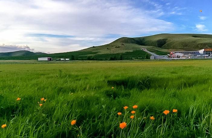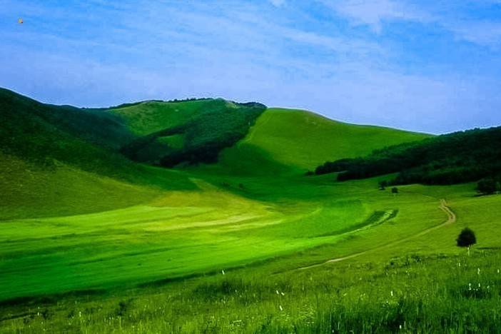 海拔1700多米的坝上草原,仲夏6月,谷底紫色野玫瑰开在绿色草甸上,一望无际。缓坡向上,华北地区最大的白桦林布满不高的山岭,白色的树干支起随风摇摆的树叶沙沙作响,不知叙述着多少美丽的传说······