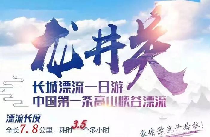 龙井关长城漂流位于唐山市迁西县汉儿庄乡龙井关村,景区以万里长城和旗山龙潭沟自然风光为依托,以洒河水资源娱乐为主题,集山水城旅游,食住行娱乐为一体。独具中国一条高山隧道峡谷漂流,落差100多米,惊险刺激。还有一条1500多米的平漂隧洞,水帘洞,时光隧道,海底世界,梦幻神秘,漂流河道长7.8公里,漂流时间3.5小时左右。两岸风光秀美,远看群山苍翠,万里长城屹立山巅,近看栗树葱郁,栗花飘香,心旷神怡。急流浅滩,交相映趣,高山隧道,惊险刺激!平漂隧道,尽显神奇!