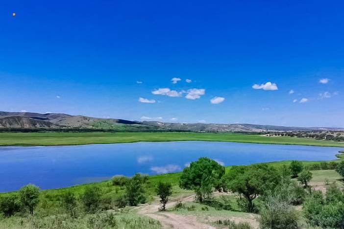 从敖包山上下来,继续乘坐越野车在金莲川草原上穿行,正值盛夏,金莲川草原上鲜花盛开,一望无际,景色宜人。一路前行,我们来到【道图淖尔草原】,这里几乎囊括了内蒙古各种特色景观:无边的草原、沙地、千年榆树林,游牧民夏营盘,蜿蜒的河流、遍地牛羊,飞奔的骏马。