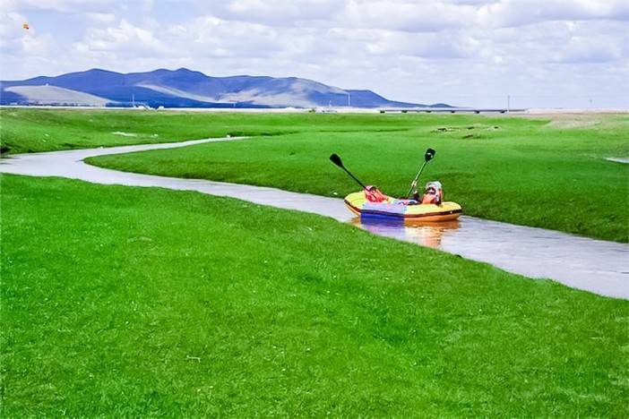 2)骑马结束,等待您的是【草原漂流】,乘坐橡皮艇,从清凉的水花中一跃而过,