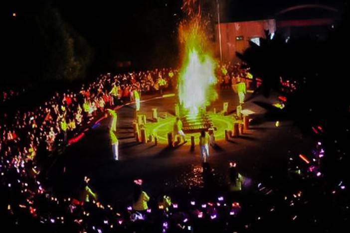 火焰越燃越旺,像一匹在草原上奔驰的骏马,游客朋友们手拉手围着篝火边舞边唱,尽情释放内心的激情和欢乐。