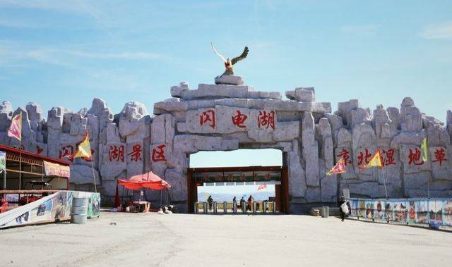闪电湖景区: 闪电湖面积不小,湖水不深,清澈见底,水草飘摇,偶尔能看见小小的虾子自由游戈,黑色和洁白的水鸟在面积上敏捷地起落,把这黄昏里的湖泊点缀了生动、阳光是金色的,把草原也涂抹成了金色地毯,只身湖边,感受微风习习,心在这样的夕阳里飘摇成了水底那株柔软的水草。在天苍苍、野茫茫的草原上闪现出这样敞亮清澈美丽的湖水。 据说在高高的天空上她看上去就像一道银色的闪电,当地人叫它闪电湖或闪电河。虽然这个名字的来历已无从考证,但是在这在天苍苍、野茫茫的草原上能有如此美丽的风景,怎能不让你感叹大自然的伟大。策马狂奔在美丽的草原上,也会为了这闪电一样的美景而止步,流连忘返