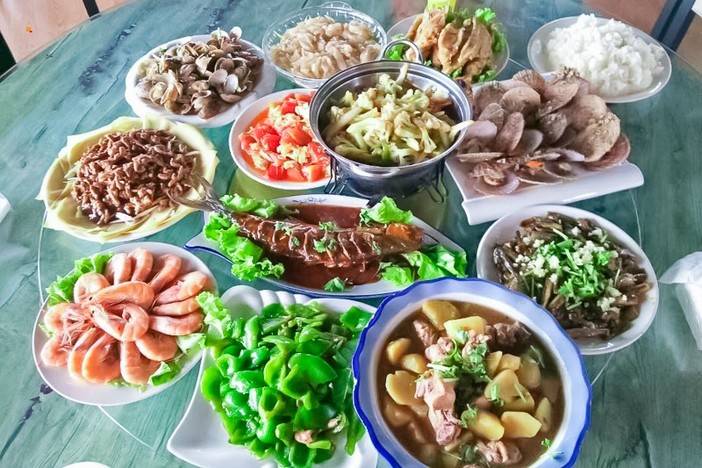 2)用餐:渔家特色菜共5餐(3正餐2早餐,正餐10多个菜含6种海鲜以上,升级一正餐为海鲜大咖);50/人/正餐*2+海鲜大咖60/人*1正+10/人/天*2