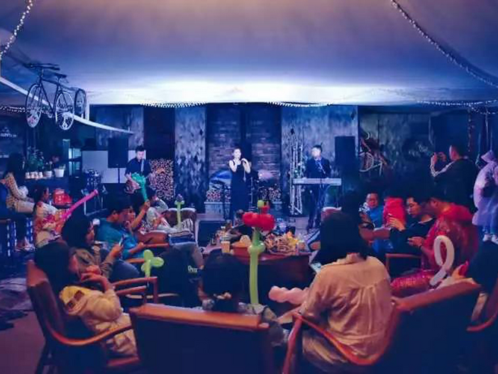 夜幕降临后,露营公园还将上演小型民谣音乐会,会员家庭简单围坐在一起,与其说是音乐会,更像大家庭的聚会,有歌有酒、有说有笑,既可以静静用心听,也欢迎轻轻跟着和。