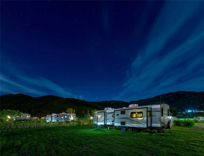 青山为靠,蓝天白云尽在眼前,呼吸着大自然最清新的空气,心情也跟着明朗了起来。坐在房车前惬意的晒晒太阳,撸撸猫,享受难得的惬意时光
