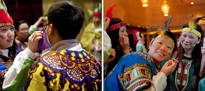 设计图腾,集体换装定妆,每一笔都是独特的印记,每一划都是部落的符号,