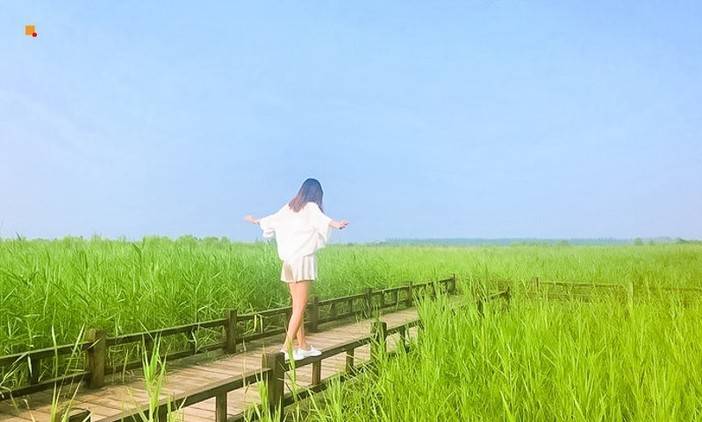 穿梭在大片的芦苇荡中央;也有林荫小路,随时休憩;景区内有网红望湖楼,可以俯瞰湖景、芦苇荡及远处的康西草原